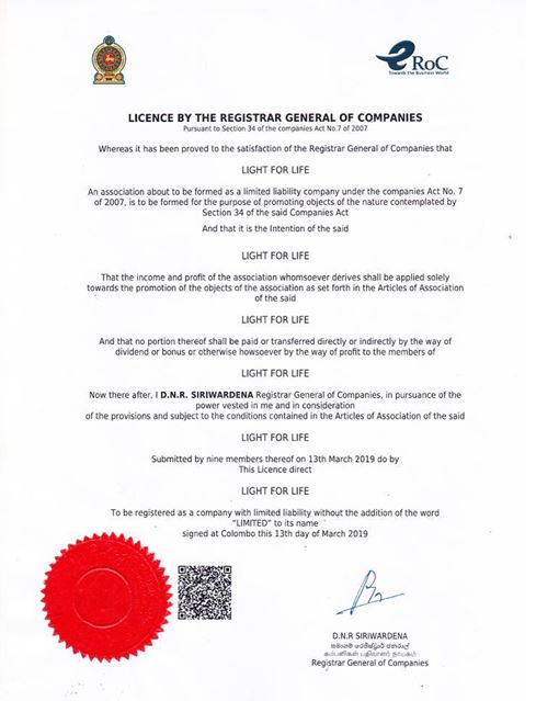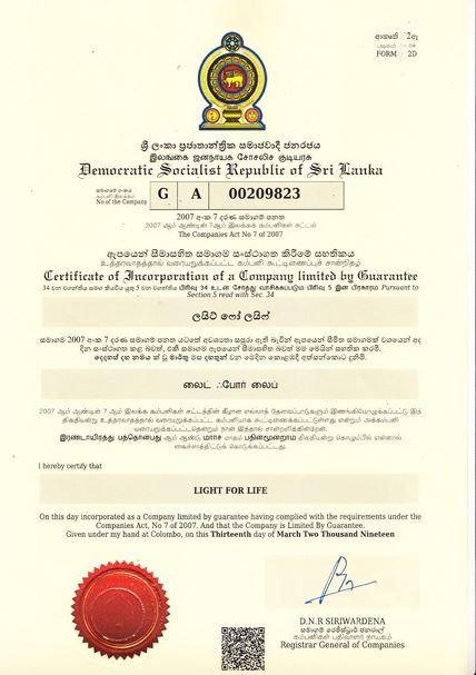 Thus, Light for Life was born. On 13 March 2019, the vision took formal shape as a Company Limited by Guarantee under Section 32 of the Companies Act No. 7 of 2007. From its very first day, the mission was bold and uncompromising: to confront poverty with opportunity, to replace despair with dignity and to unlock the future through the power of education and hope.